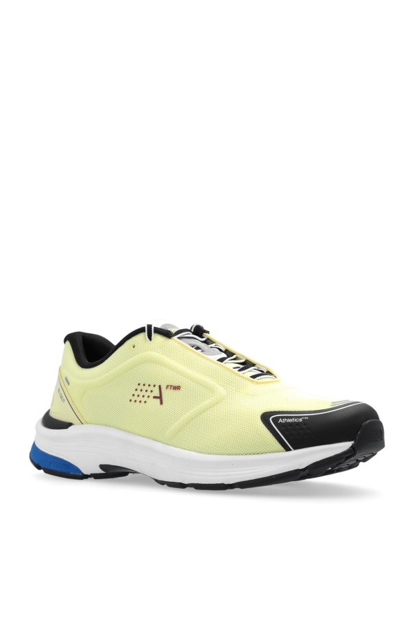Light yellow and black ‘ONE REMSTRD’ sneakers from Athletics FTWR. Made of breathable MOLDTEC® mesh with technology, this lace-up pair features a logo, round toe as well as a black, white and blue sole made from EVA foam and abrasion resistant DURACOMP® rubber.