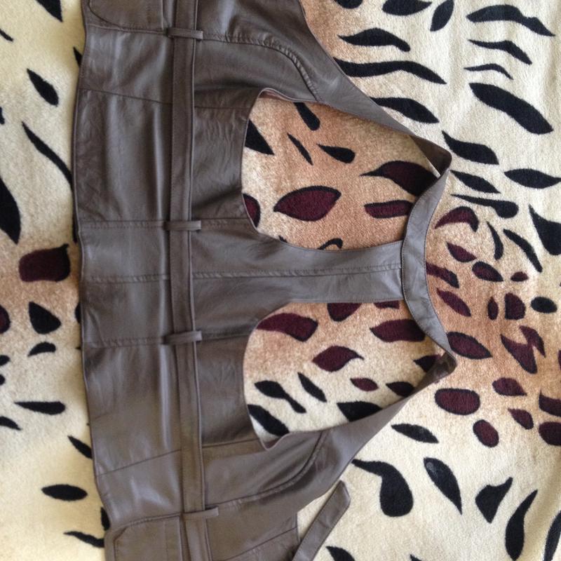 Жилет из кожзама, хорошего качества. От кожи практически, не отличается, мягкая. На размер 48.
