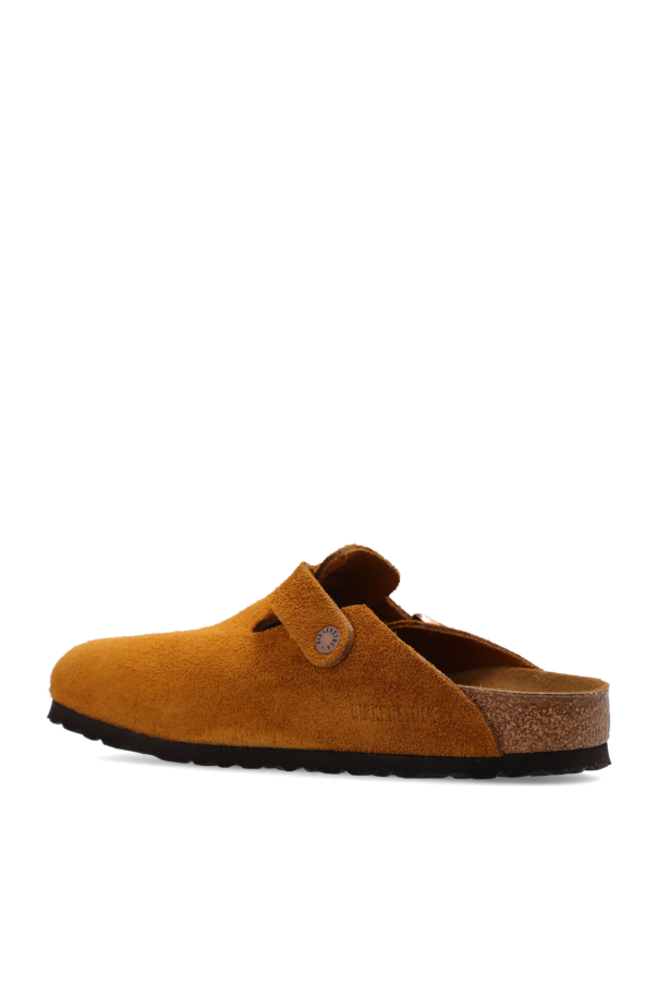Brown ‘Boston BS’ slides from Birkenstock. Made of suede, this pair features an adjustable buckle strap, embossed logo on the side, tapered anatomically-shaped cork-latex footbed as well as a brown sole constructed from natural cork and EVA foam.