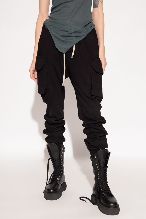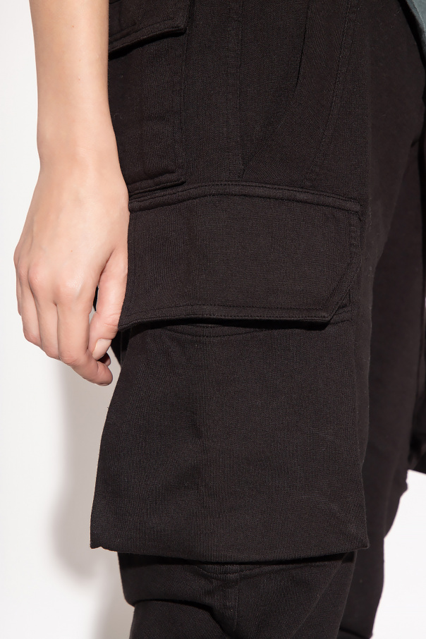 Black sweatpants from Rick Owens DRKSHDW. Made from cotton, this pair features a drawstring waistband, elasticated cuffs, two slip pockets and four flapped pockets.