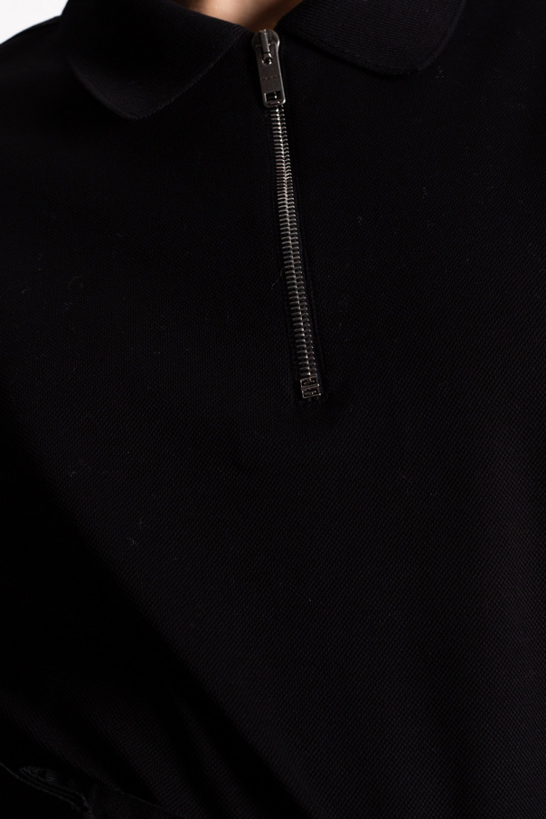 Black T-shirt from Givenchy. Crafted from cotton, this style showcases a zip fastening and side slits.
