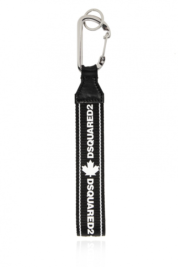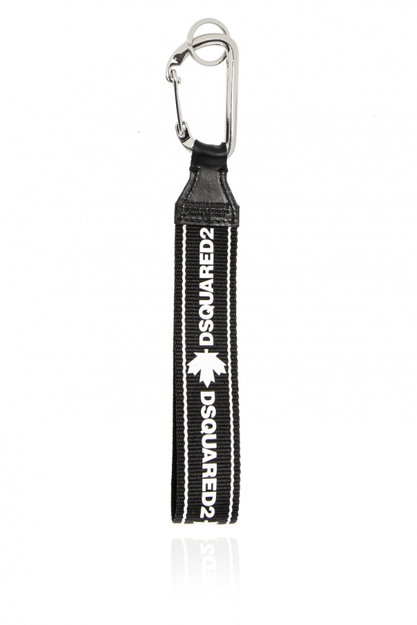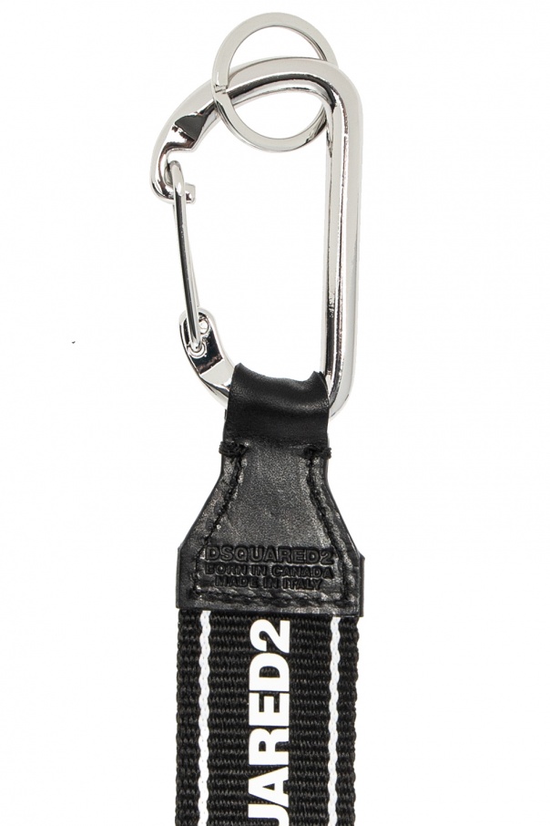 Black key lanyard from Dsquared2. Detailed with the label\'s logo in white, this accessory is complete with silver-tone lobster clasp and calf leather piping.