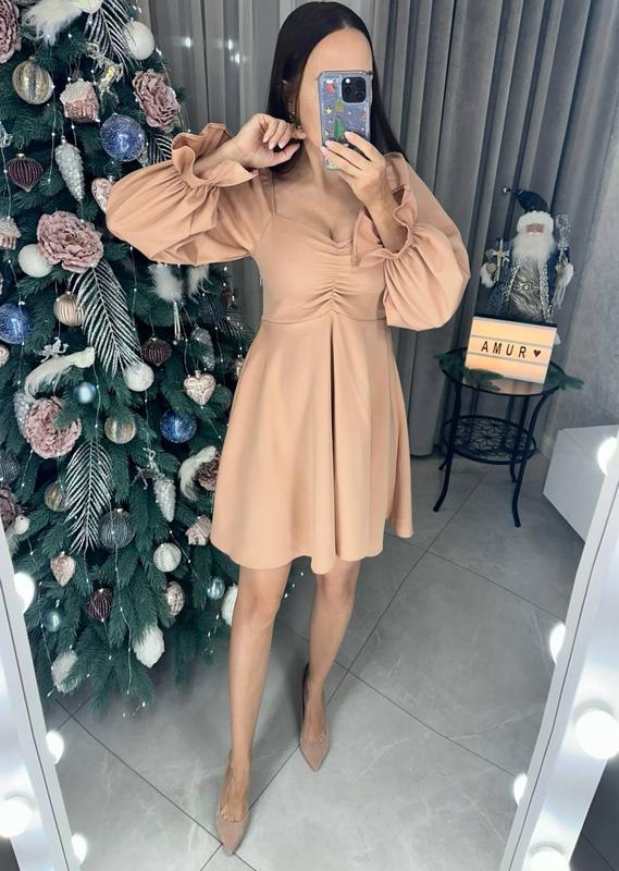 Надзвичайно ніжна, гарна та елегантна. Збоку має блискавку для зручності одягання, ніжні легкі зборки на груддях, широкий рукав з резинкою знизу, широку спідницю, що гарно лягає.Стан: НовийКолір:- Рожевий
