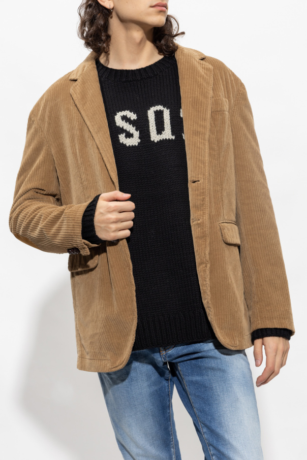 Brown corduroy blazer from Dsquared2. Crafted from cotton, this style features button fastenings, three pockets on the front (two with flaps), a double back vent and long sleeves with elbow patches.