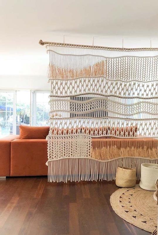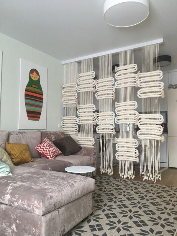 Перегородки плетеные текстильные межкомнатные панно гобелен штора сетка панель макраме бохо веревка