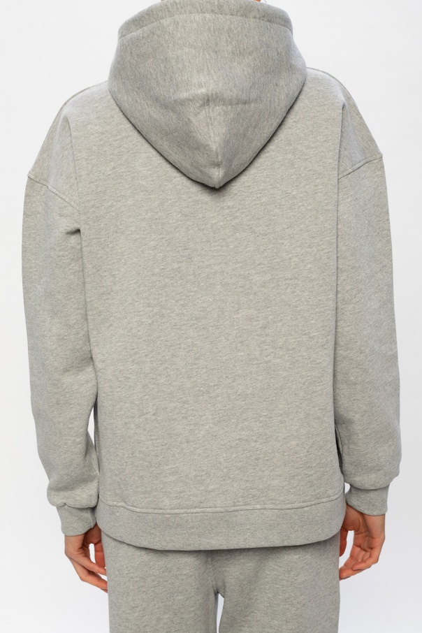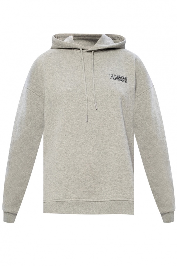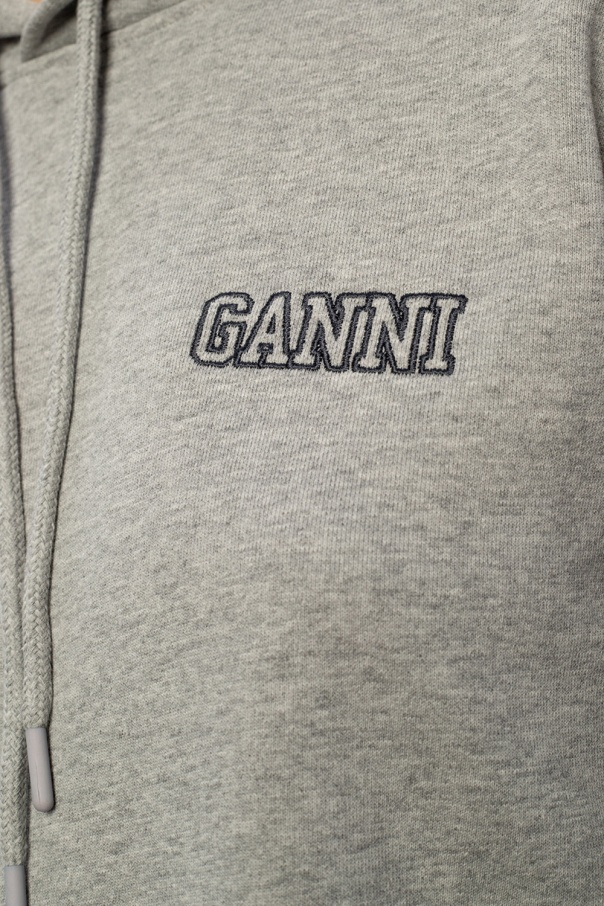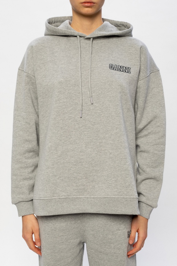 Grey hoodie from Ganni. This design features a drawstring hood, logo embroidery and side slits.