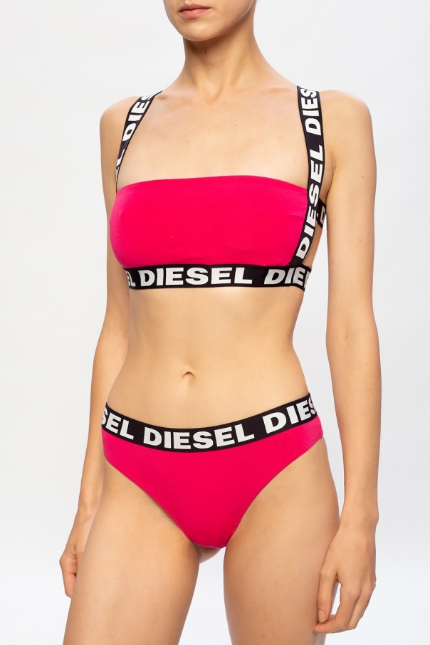 Pink bra from Diesel. Cut from stretch cotton, this style comes with embroidered white logo of the label.