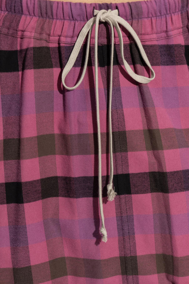 Pink and black shorts from Rick Owens. Crafted from cotton, this pair features an elastic drawstring waistband, check pattern, two slip pockets and two zip pockets.