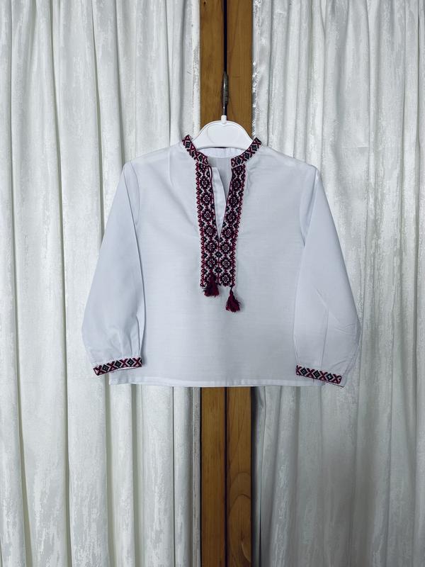 Вышиванка для мальчика 3-5 лет. Замеры: длина по спинке 36 см., длина рукава от плечевого шва 33 см., ширина между плечевыми швами 27 см., полуширина груди 33 см.