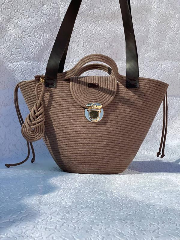Сумка из хлопкового шнура.Сумка трансформер. высота 29, ширина по верху 40 дно круглое в диаметре15 см Цвет мокачино, сумочка для телефона продается отдельно.Цвет мокачино. Под заказ 5-6днов