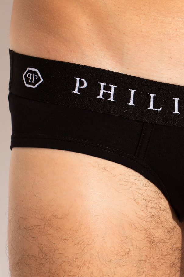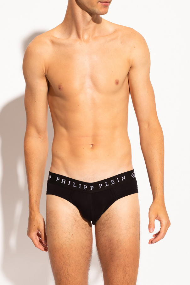 Black briefs from Philipp Plein. Featuring an elastic waistband with a white logo, this pair is embroidered with a black pattern.