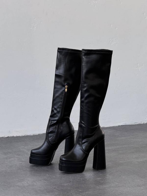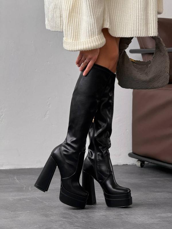 Материал верха:Искусственная кожа ,Высота каблука:Очень высокий ,Высота изделия:Высокие ,Голенище:Стандартное ,Сезон:Осень , Весна , Демисезон ,Материал подкладки:Текстиль , Флис ,Тип подошвы:Платформа ,Тип подошвы:Каблук ,Длина стельки:24,5 , 24 , 26 ,Описание
