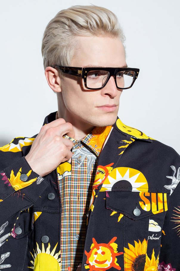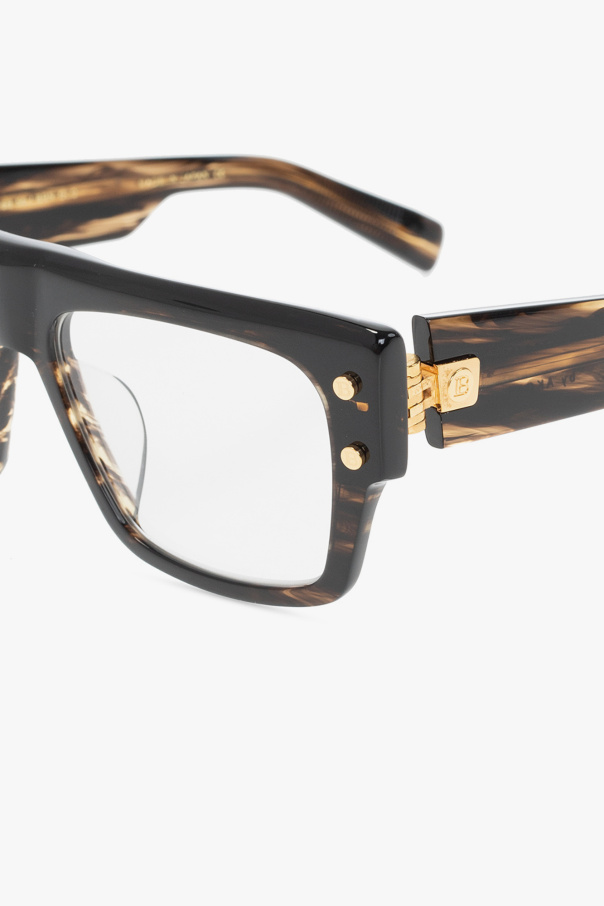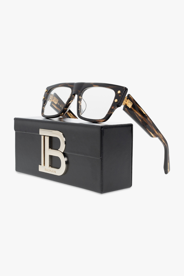 Dark brown and beige optical glasses from Balmain. Enriched by gold-tone logo plaques, this pair comes with a silver-tone branded leather case.