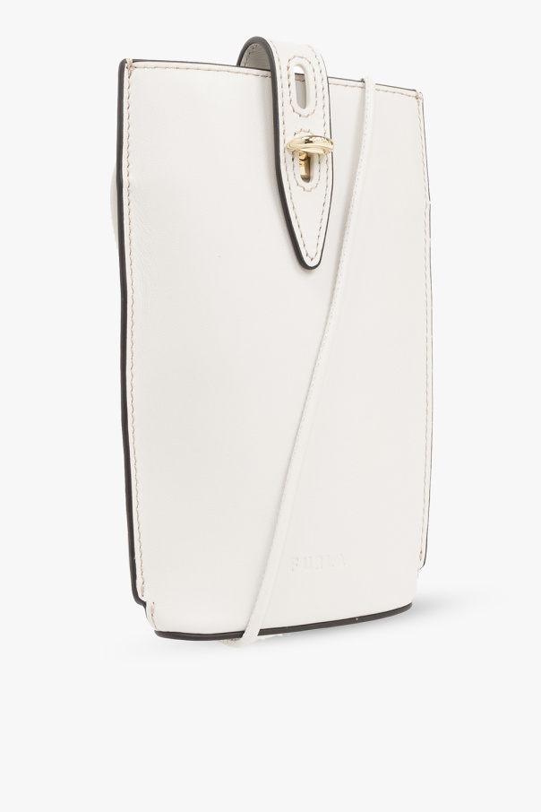 Cream ‘Unica Mini’ phone holder from Furla. Made of leather, this item adjusts via a twist closure and features an embossed logo on the front and bottom. It is complete with a shoulder strap, gold-tone metal hardware and one internal compartment.