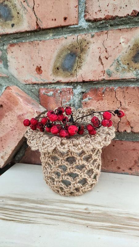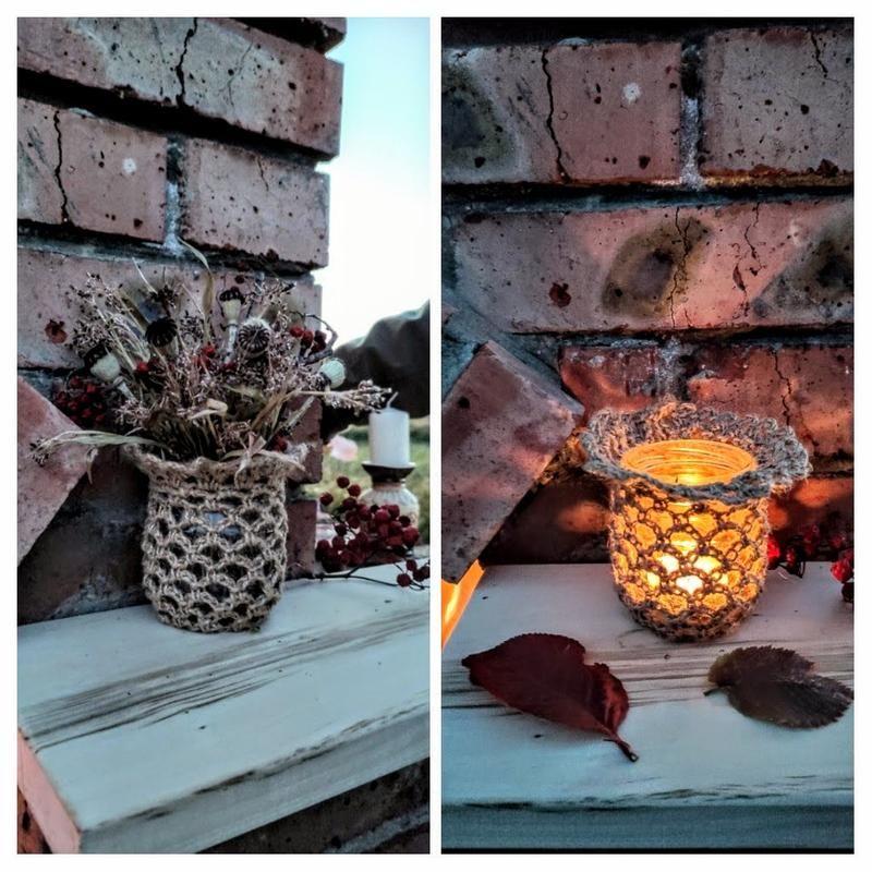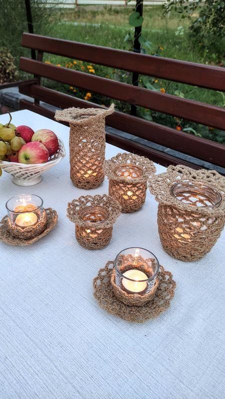 Підсвічник у язаний гачком із натурального джуту. Чохол + скляна банку 0,2 мл Виконаємо на замовлення за вашими розмірами 🤗.