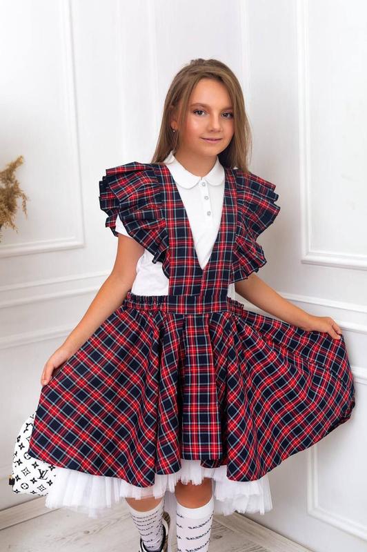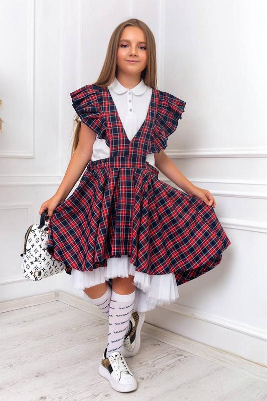 Материал:Трикотаж , Фатин ,Принт:В клетку ,Описание