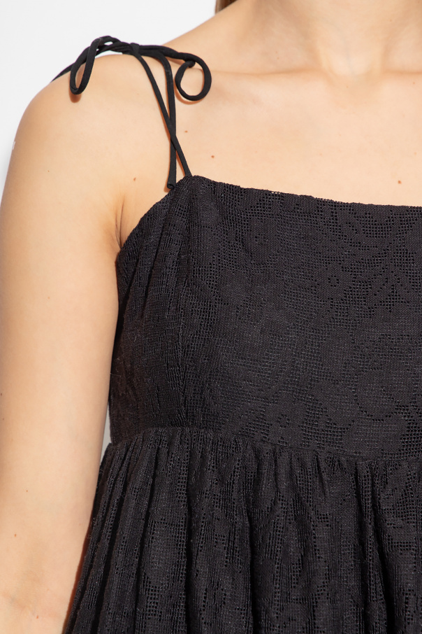 Black ‘Faiza’ dress from Notes Du Nord. Rendered in lace, this style features a back zipper and adjustable shoulder straps with self-tie detailing.