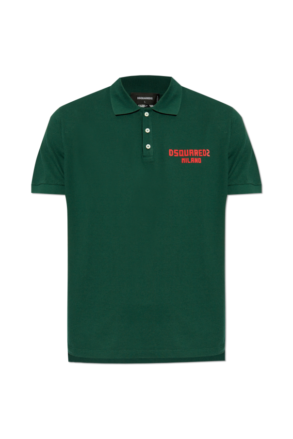 Indulge in the epitome of timeless elegance with the DSQUARED2 Polo Shirt, a harmonious blend of classic and modern aesthetics. This distinguished piece, in a profound shade of dark green, exudes sophistication and versatility. Crafted with precision from the finest 100% cotton, this polo promises unparalleled comfort and breathability. Its classic short-sleeve design, accentuated by a buttoned collar, is both understated and refined. Adorned with the iconic red \"DSQUARED2 MILANO\" logo on the left chest, this shirt epitomizes the brand\'s commitment to luxurious simplicity. The DSQUARED2 Polo Shirt is an exquisite choice for both casual and formal occasions, reflecting the brand\'s signature fusion of American glamour and Italian chic. Why Choose This Product? Exclusive Design: A hallmark of the renowned DSQUARED2 brand. Premium Material: Made from 100% high-quality cotton. Versatile Style: Perfect for any occasion, from casual to formal. Iconic Logo: Features the distinctive \"DSQUARED2 MILANO\" branding.