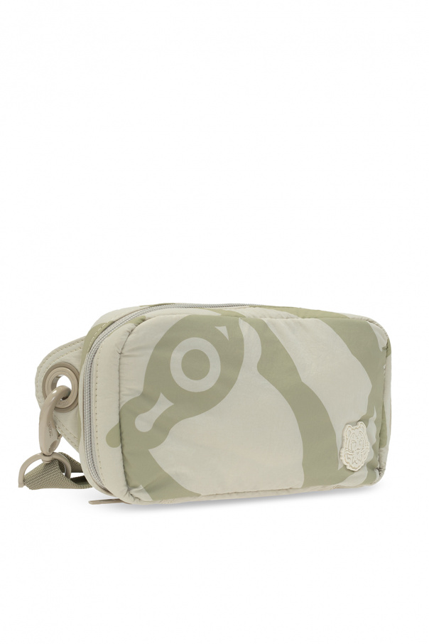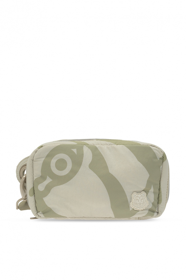 Green belt bag from Kenzo. Fastened with a zip, this item is decorated with a print and a patch with the label’s signature tiger head motif. It also features an adjustable strap and one internal compartment with one slip pocket and six card slots.