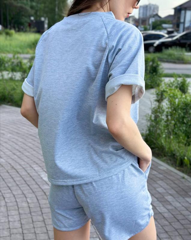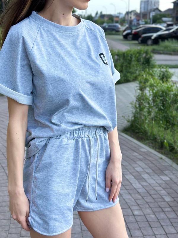 Очень удобный костюм футболка и шорты для повседневной носки а также для занятия спортом. В наличии размер S, M, L, Xl. Тканина двунитка.