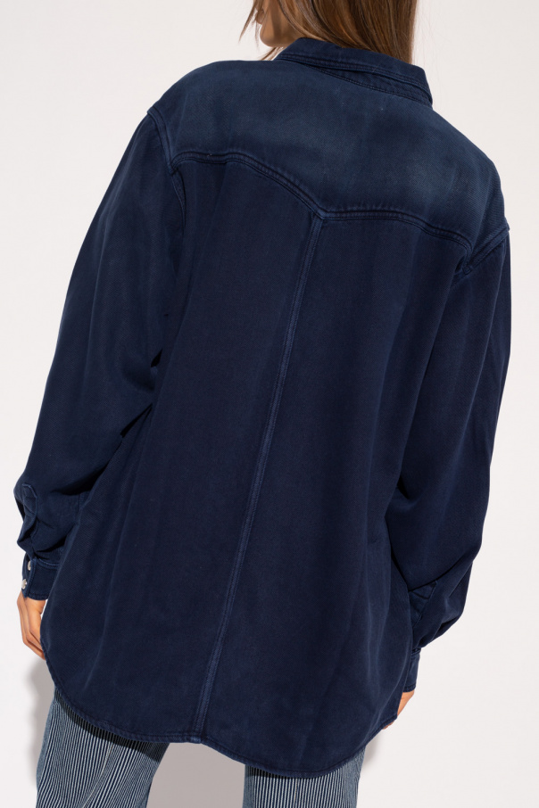 Navy blue ’Taniami’ shirt from Isabel Marant Étoile. Fastened with snaps, this style features two snap-fastened flapped pockets on the front and long sleeves with snap-fastened cuffs.