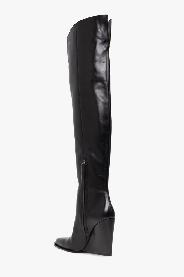 Long, black wedge boots from Victoria Beckham. Crafted from calf leather, this pair features a side zip, almond toe and cream leather sole.
