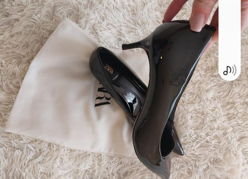 Чорні оригінальні лакові туфлі zara, на маленькому зручному каблуку, з бирками, 38 розмір, замовляли на офіційному сайті