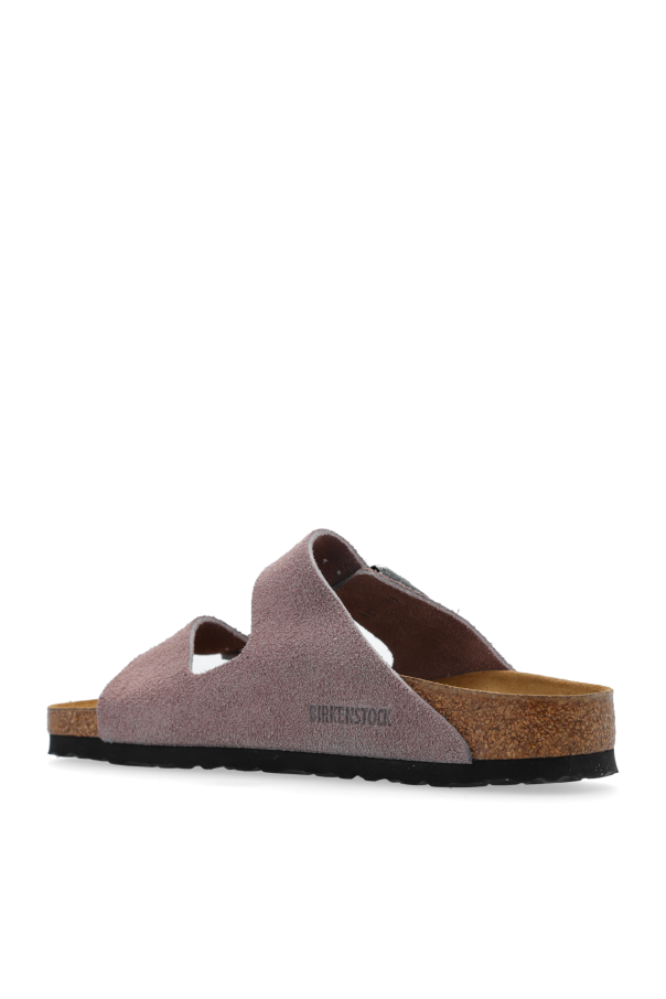 Introducing the Arizona BS Sandals by Birkenstock, a fusion of elegance and comfort designed to elevate your summer wardrobe. These two-strap sandals, distinguished by their vibrant purple hue that subtly shifts to softer roseate shades under different lights, are a testament to Birkenstock\'s commitment to quality and style. Crafted with a 100% leather upper and inner layer, these sandals ensure a luxurious and breathable fit. The adjustable straps, adorned with metal buckles bearing the Birkenstock logo, allow for a personalized fit, securing the foot in stylish comfort. A signature contoured cork sole, with an additional layer of suede-like material, provides unparalleled support and durability. The insole, also made of soft suede, features the embossed Birkenstock logo, underscoring the brand\'s attention to detail and authenticity. The Arizona BS is not just a sandal; it\'s an experience. Its rubber outsole offers flexibility and grip, making every step a statement of sophistication. Whether viewed from above, revealing the natural cork insole and the brand\'s imprint, or from the side, showcasing the embossed logo, these sandals are unmistakably Birkenstock. Why Purchase This Product? Exclusive Design: The dual-strap configuration and unique coloration set these sandals apart. Premium Materials: 100% leather construction paired with a rubber sole ensures durability and comfort. Adjustable Fit: Metal buckle closures allow for a tailored fit to your foot. Trademark Comfort: The contoured cork sole with a soft suede insole offers unmatched support. Elegant Aesthetics: The subtle purple hue and refined detailing embody luxury.