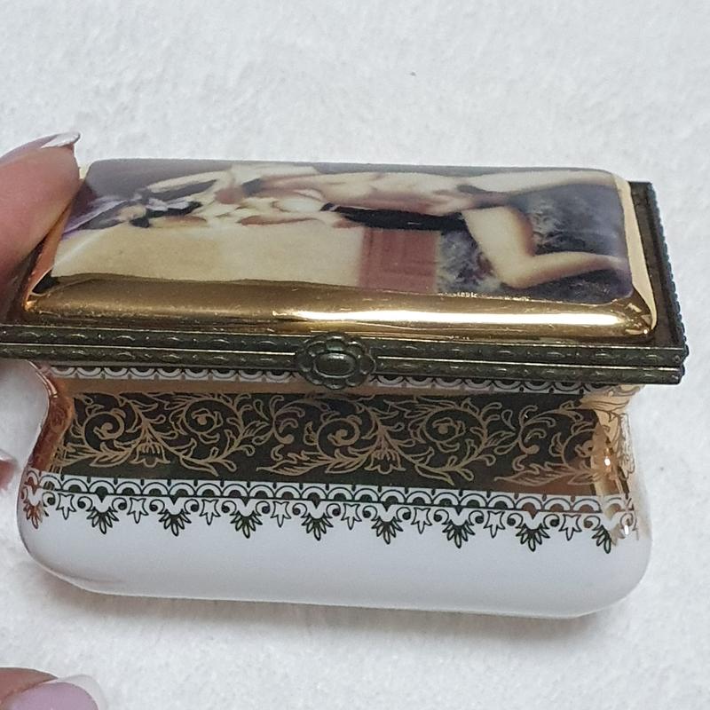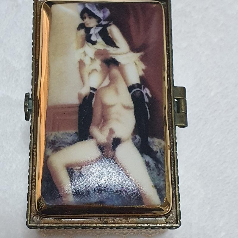 Фарфоровая эксклюзивная шкатулка ручная работа . покрыта 24к.золотом. С эротическим рисунком на верхней крышке. Латунный обклад с замком. Цена 200$. Для ценителей оригинальных эксклюзивных штучек. Размер 8×4.5×5см. Вопросы ноль/67/486/53/03.