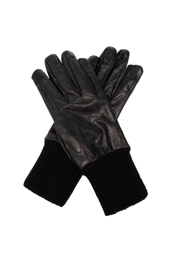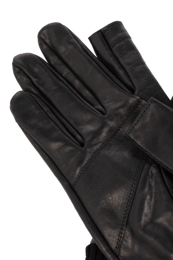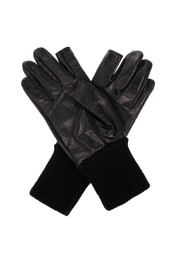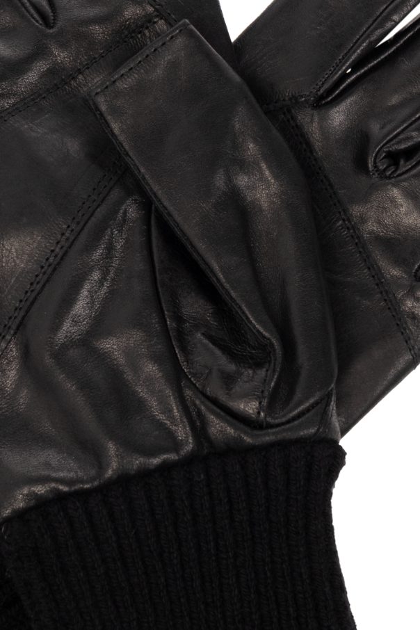 Black gloves from Rick Owens. Crafted from calf leather, this pair features elasticated cuffs and raw trims at the fingers.