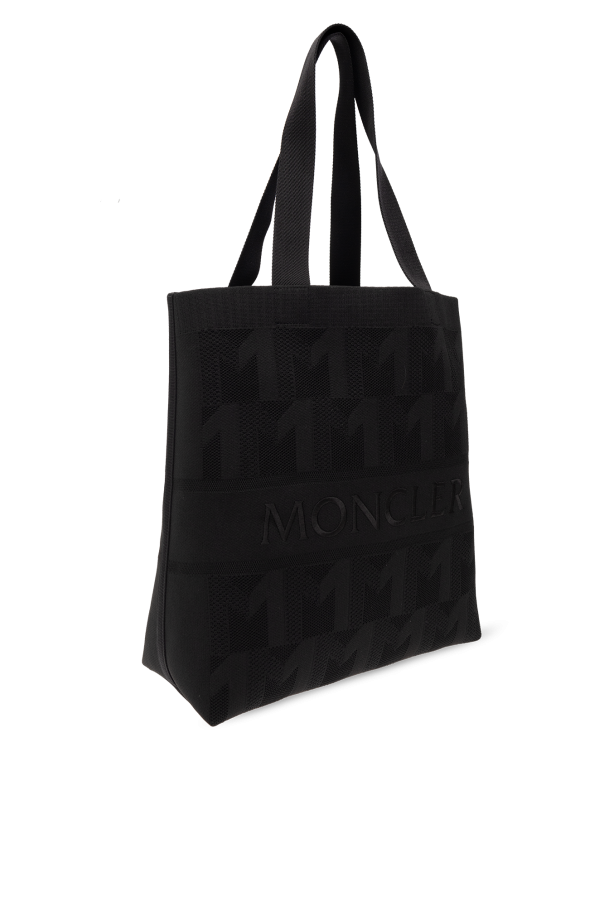 Black shopper bag from Moncler. Made from fabric, this design showcases a monogram motif, logo embroidery, two handles and one internal compartment with a slip pocket.