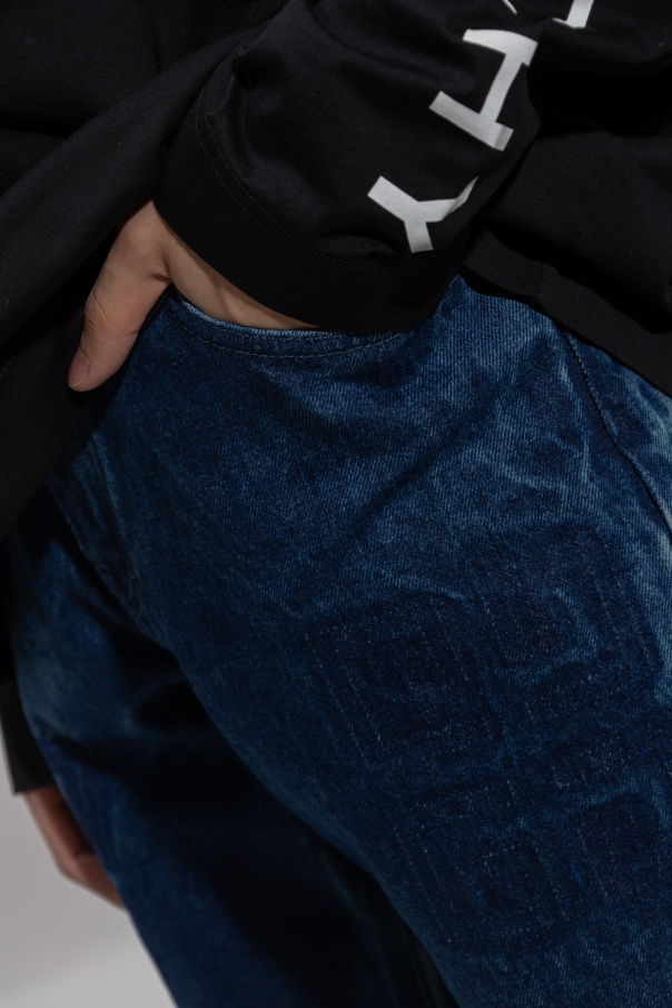 Dark blue jeans from Givenchy. Falling with straight legs, this pair features the brand\'s ‘4G’ motif, a vintage treatment, a zip fly with a button and four slip pockets.