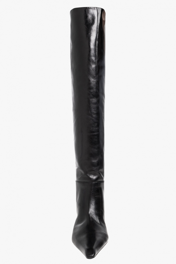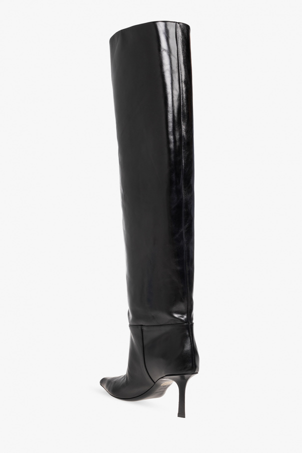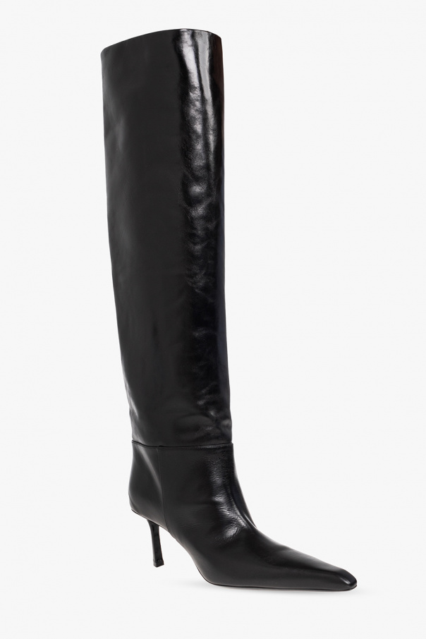 Black ‘Viola’ heeled boots from Alexander Wang. Crafted from leather with a slip-on silhouette, this model features a pointed toe and a black leather sole.