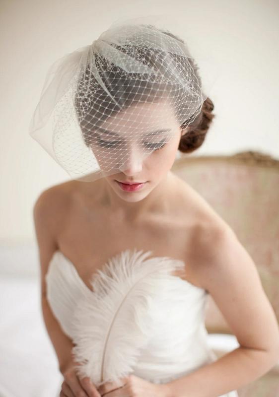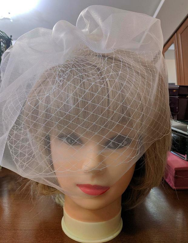 Вуалетка сформирована из сетки-вуали - нижний слой, еврофатин - верхний слой. Пришита на гребешек для удобства закрепить в прическу. В наличии есть несколько оттенков вуали: белый, молочный, айвори, и персик-пудра.