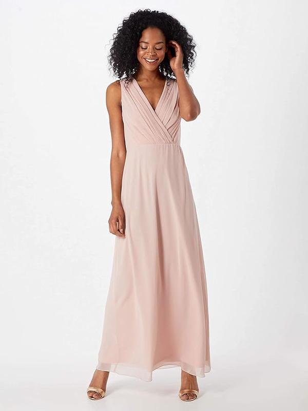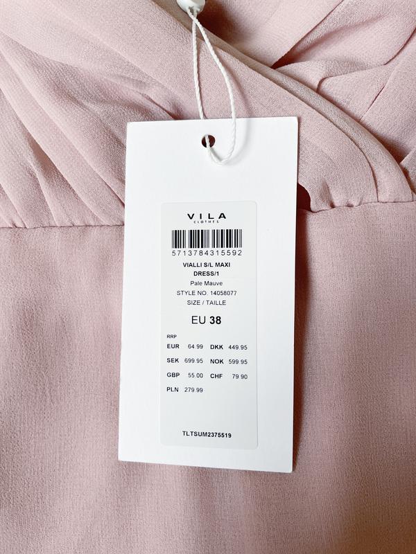 Шикарное воздушное длинное платье Vialli от бренда VILA в красивом пудровом цвете.