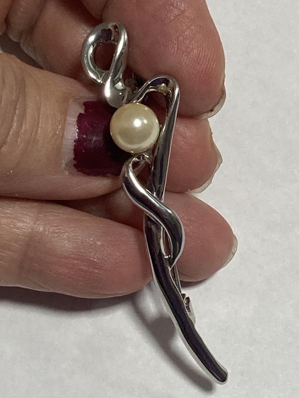 Брошь в серебряном тоне вставка искусственный жемчуг размер 6*1,5см