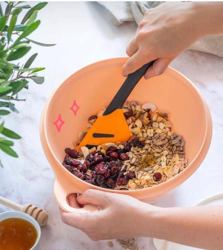 матеріалу.Силіконовим скребком зручно перевертати продукт на пательні та змішувати будь-