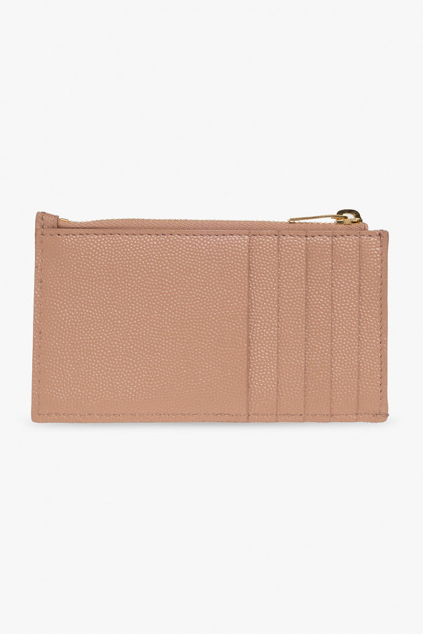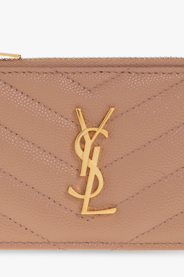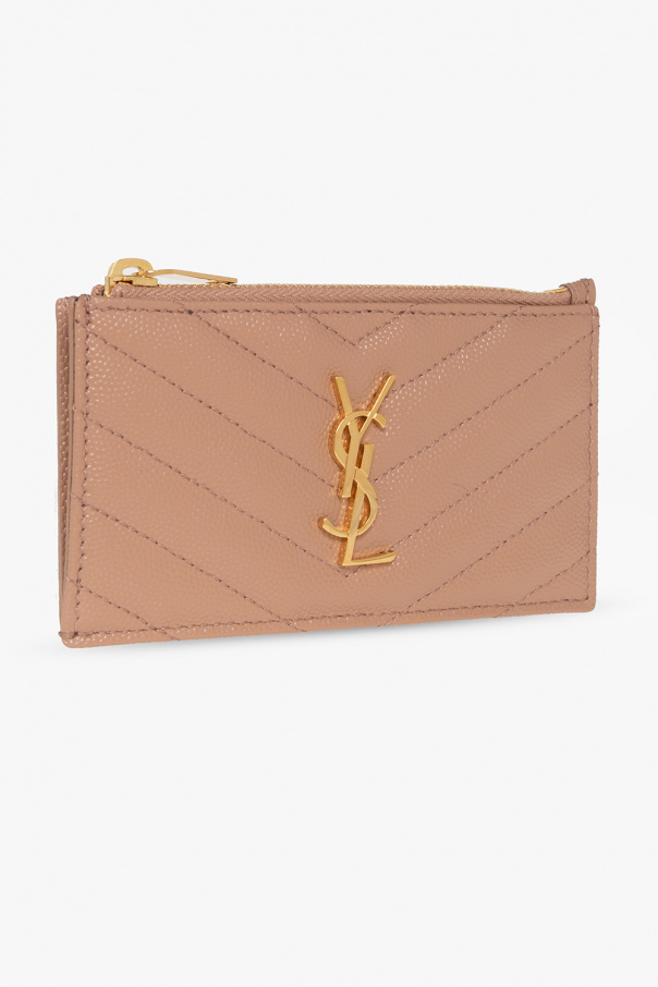 Pink and beige quilted card holder from Saint Laurent. Made of calf leather, this item features a logo appliqué, five slip pockets at the back and one internal compartment with zip fastening.