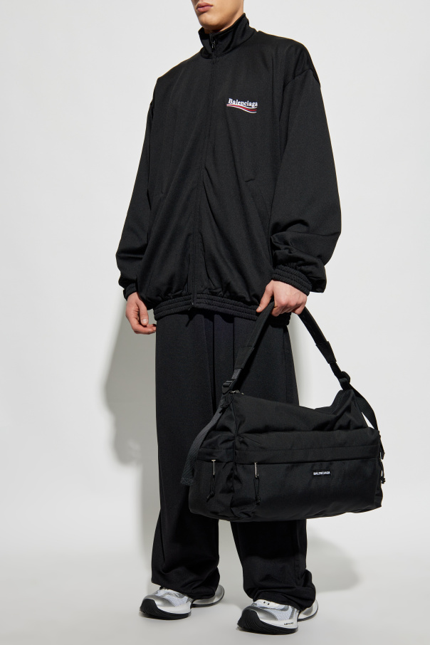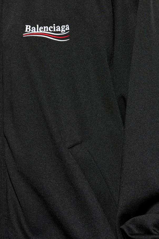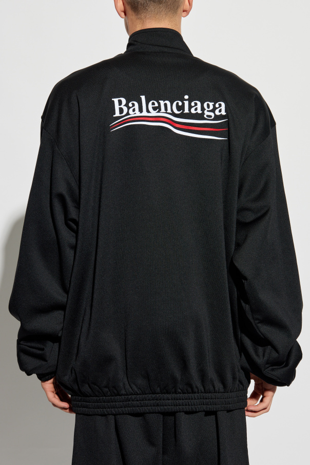 Introducing the Logo Sweatshirt by Balenciaga, a symphony of elegance and modernity. This distinguished black sweatshirt, crafted from a blend of poliamid and cotton, epitomizes luxury with its sleek, smooth texture. The design features a relaxed fit with a high collar, offering both comfort and sophistication. Adorning the left chest and back is the iconic Balenciaga logo, elegantly highlighted by a red and white wave, a testament to the brand’s legacy. The sweatshirt is equipped with practical side pockets, while the cuffs and hem are finished with elastic ribbing, ensuring a perfect fit. Why consider this product? Signature Balenciaga design with unique logo placement. Comfortable and chic relaxed fit. Functional side pockets for convenience. Crafted from high-quality materials for a luxurious feel.