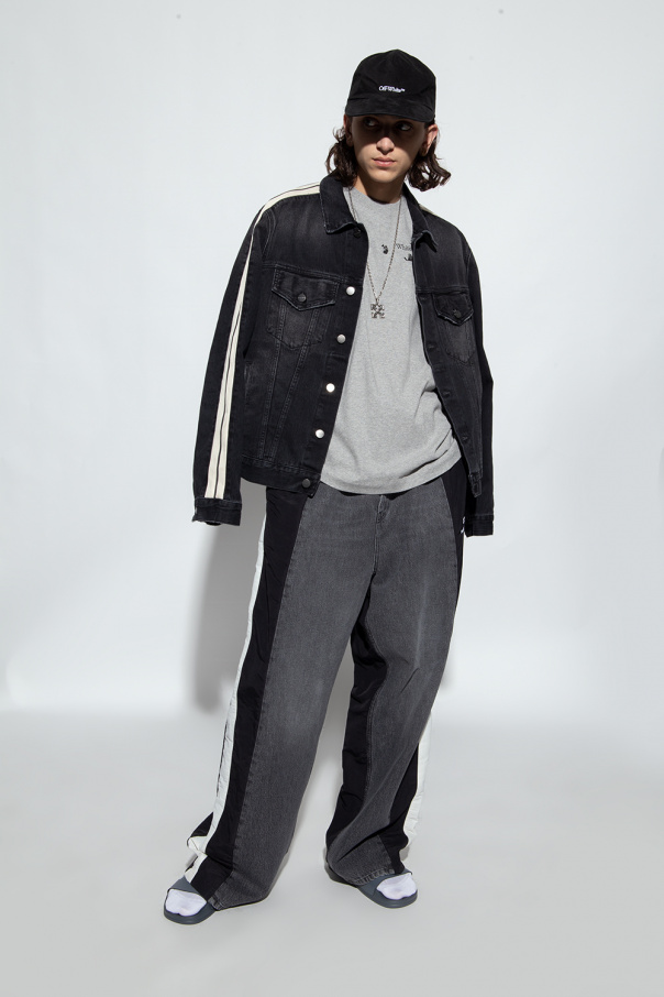 Grey slides from Off-White. Resting on a grey rubber sole, this pair features a grosgrain strap with a logo in white.
