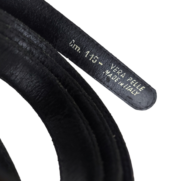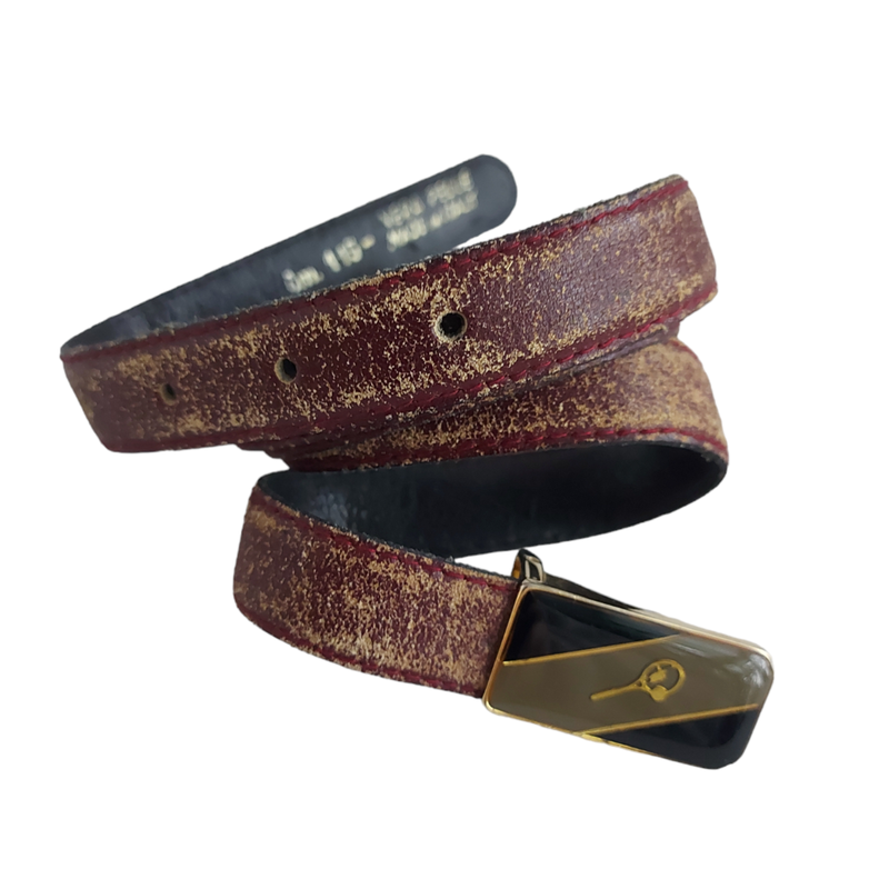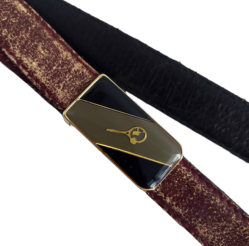 Винтажный кожаный ремень с золотой металлической пряжкой украшенной глазуром / Италия