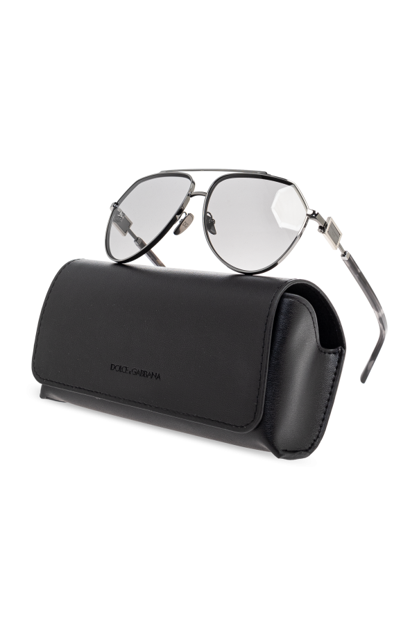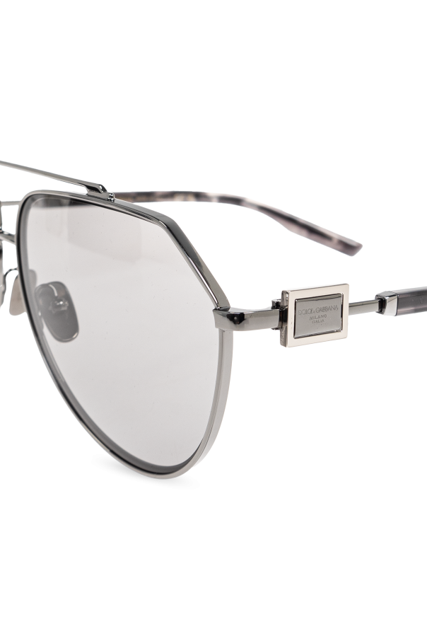Introducing the epitome of sophistication and style: the Dolce & Gabbana Sunglasses from an exclusive collection. These sunglasses feature a classic aviator shape, characterized by large, rounded lenses and slender frames, embodying timeless elegance perfect for any occasion. The frames, crafted from premium metal in a lustrous silver hue, exude modernity and refinement. The lenses, in a subtle light gray tint, offer protection from UV rays, blending functionality with a chic aesthetic. Exclusivity is further accentuated by the designer\'s logo elegantly embossed on the temples, and the inclusion of a luxurious carrying case enhances the opulent experience. Why Choose This Product? Timeless aviator design for versatile styling Crafted from high-quality materials: metal and acetate Subtle gray lenses with UV protection Includes a luxurious case for safekeeping Iconic branding by Dolce & Gabbana for unmatched elegance