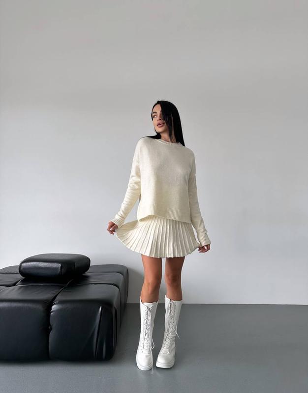 🤍 Костюм (юбка плиссе + свитер Оверсайз )