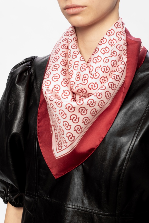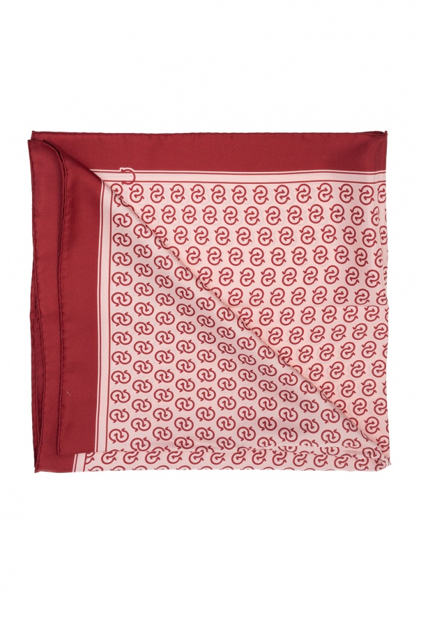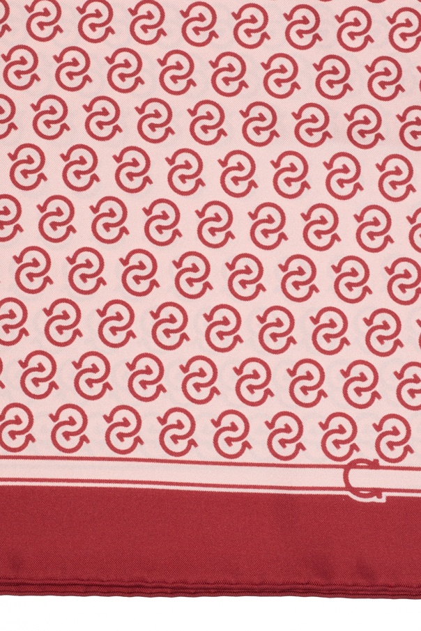 Red and pink shawl from Salvatore Ferragamo. Woven from silk, this item is adorned with a Gancini pattern.