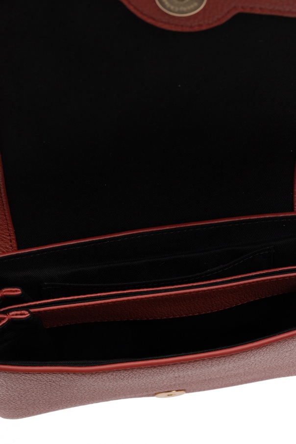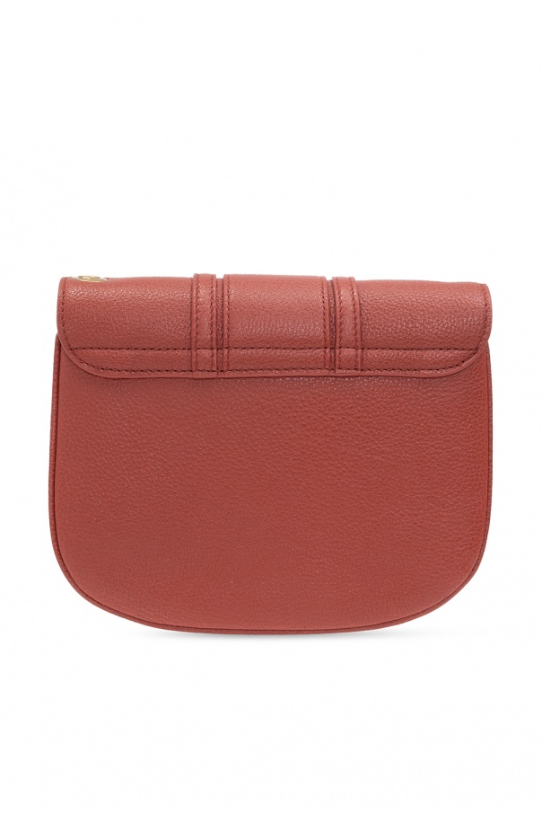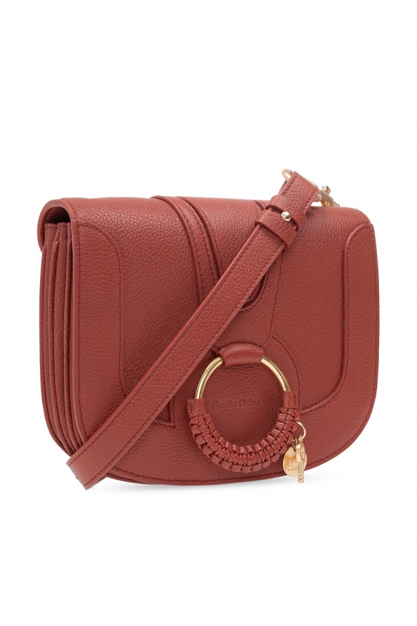 Maroon ‘Hana’ shoulder bag from See By Chloé. Crafted from goat leather with suede trims, this design fastens with a magnetic snap and is decorated with a round appliqué with woven details and logo-embossed charms. It is complete with a detachable and adjustable shoulder strap, gold-tone metal hardware and two internal compartments with one slip pocket and one card slot.