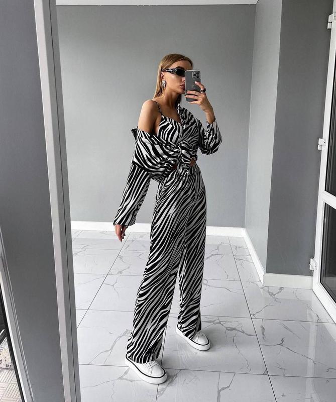 Вид костюма:Тройка ,Сезон:Лето , Осень , Весна ,Принт:Зебра ,Стиль:Классический ,Описание