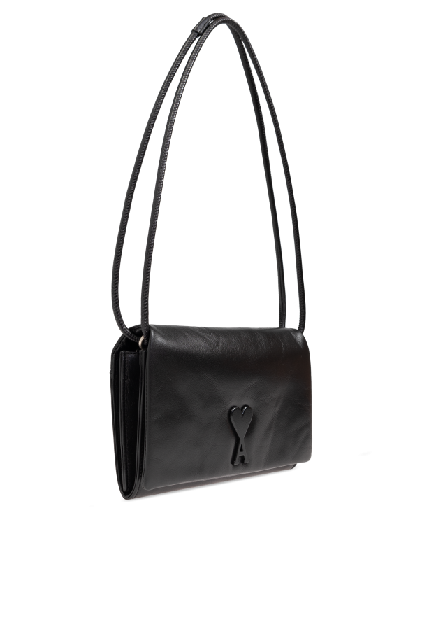 Introducing the exclusive Shoulder Bag from the esteemed fashion house Ami Alexandre Mattiussi. This timeless piece, crafted with meticulous attention to detail, epitomizes elegance and sophistication. The bag boasts a sleek rectangular shape with gracefully rounded edges, accentuating its minimalist yet luxurious design. Made from premium cowhide leather, the bag\'s smooth, monochromatic black exterior exudes an air of understated opulence. Key features of this exquisite accessory include the embossed heart-shaped logo with an \"A\" at the bottom, prominently displayed on the front. The long shoulder strap ensures comfort and versatility, making it perfect for both daily use and special occasions. Inside, you\'ll find a thoughtfully designed interior with dual compartments, three card slots, a zippered pocket, and a slip pocket, providing ample space for all your essentials. The bag closes securely with a magnetic snap, combining practicality with style. Why Choose This Product? Crafted from high-quality cowhide leather Elegant black color with embossed logo Spacious interior with multiple compartments Comfortable long shoulder strap Secure magnetic closure Designed by the renowned brand Ami Alexandre Mattiussi