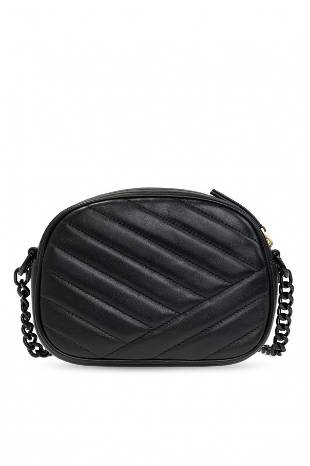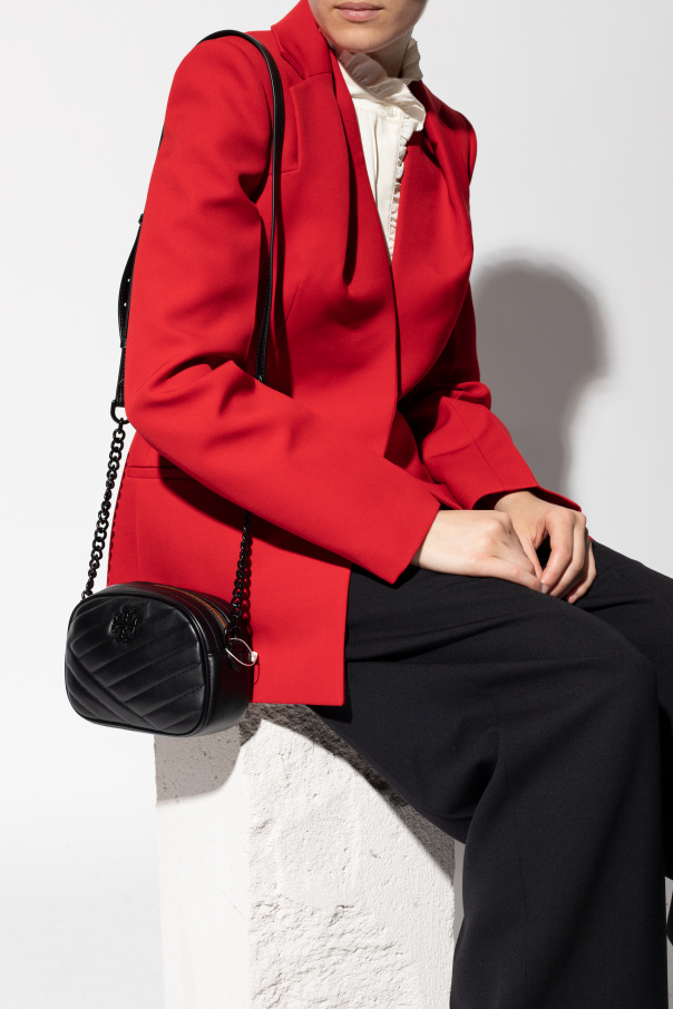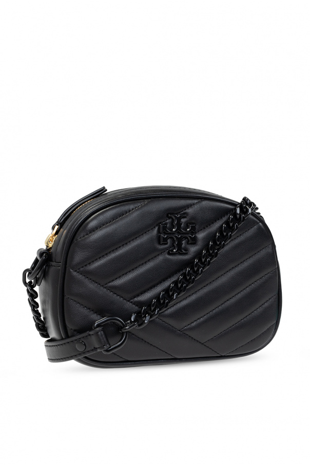 Black ‘Kira’ shoulder bag from Tory Burch. Crafted from leather, this design secures with a zip and showcases a black logo appliqué, a chain-reinforced shoulder strap, gold-tone metal hardware and one internal compartment with two slip pockets and one zip pocket.