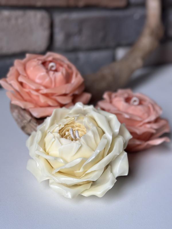 Свеча роза из пчелиного воска, каждый лепящий лепестк вручную, а их 75. Диаметр свечи: 12 см. В наличии молочного цвета.