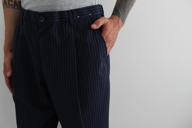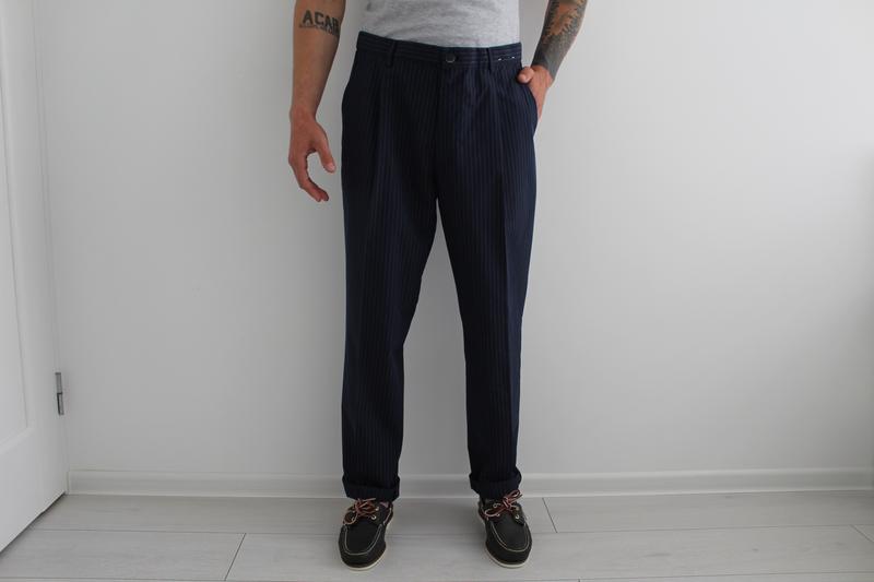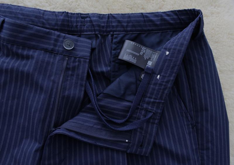Неймовірно красиві,базові брюки в смужку від(Uniqlo),темно-синього кольору,виготовлені якісно,матеріал коттон з добавленням поліестру,актуальний вільний крій виробу,зручні та комфортні,на тілі виглядають дуже стильно)